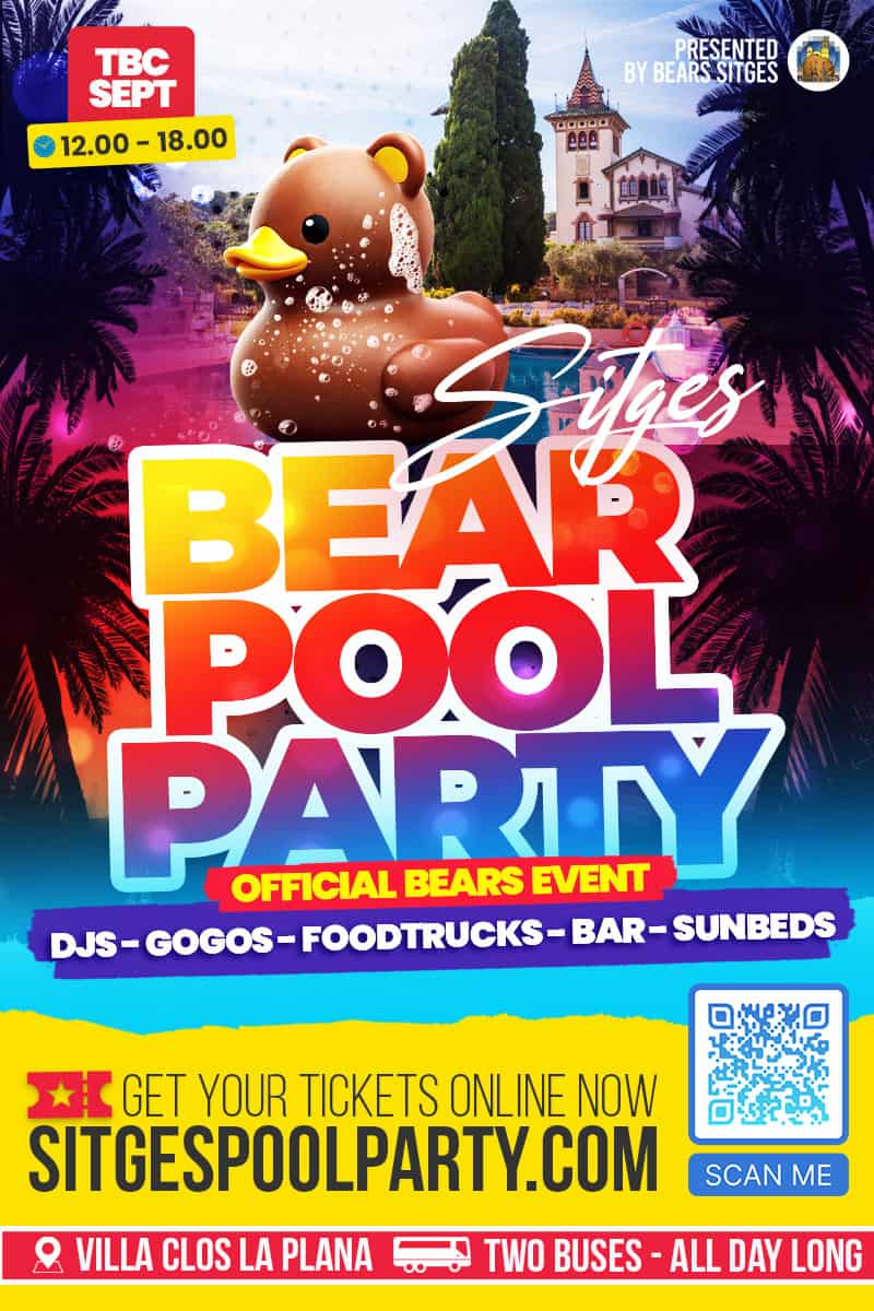 Clos de la Plana hosts the Sitges Pool Party; a grand villa estate just outside Sitges, set among rolling vineyards with a large pool, sunbeds, VIP zones, DJ stage, and sweeping views—perfect for an exclusive open-air gay party.
